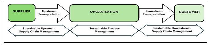 According to Hassini et al. (2012), sustainable supply chain management (SSCM) is defined as the management of resources, processes, information, and finances to maximize the supply chain profitability, minimize the impact on the environment and maximize the social well-being. By the upstream supply chain, we can refer to the processes that relate to the procurement of the several raw materials for the B2B industries that are required to run the business under consideration, the production lines, while the downstream supply chain refers to those processes that are dealing with the disbursal of the finished goods, the distribution, the consumption of the goods and the disposal of the wastes.