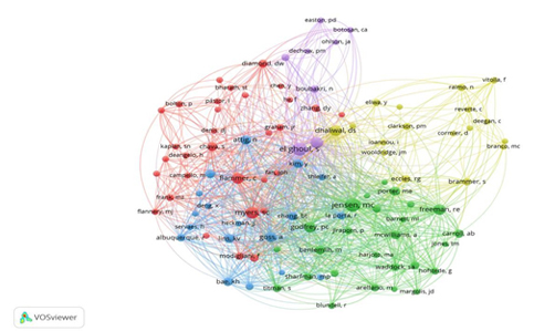 The node size indicates the frequency of publications or citations in all network visualisations, whereas the link strength indicates how closely nodes are related to one another. While co-citation networks reveal the most significant works influencing the body of knowledge, co-authorship analysis emphasises the collaborative nature of the field. Bibliographic coupling offers information about the intellectual proximity of recent publications, whereas keyword co-occurrence identifies dominant and emerging research themes. When combined, these techniques enable a thorough mapping of the conceptual, intellectual, and social structures of a field (Donthu et al., 2021; Wang et al., 2023).